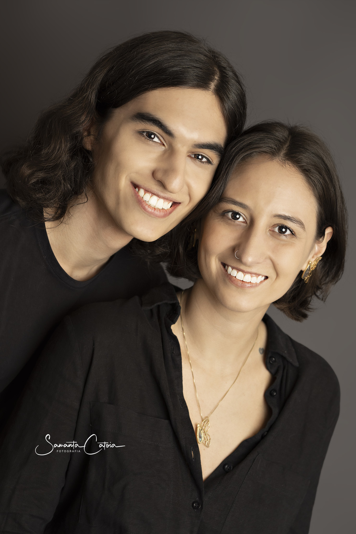 Os manos Matheus e Nayana numa linda conexão de irmãos, estúdio Catoia em Florianópolis.